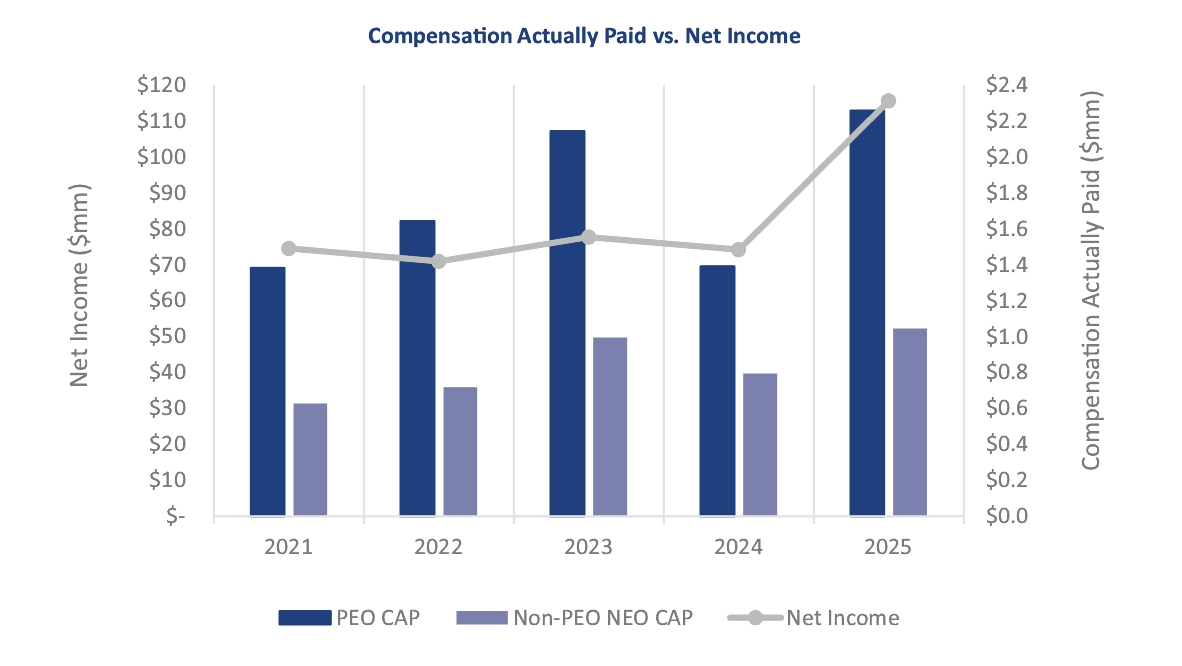 Our 2025 executive compensation program consisted of base salary and discretionary cash incentives payable based on the CHC Committee’s evaluation of our overall financial performance and the contribution of the individual NEO to such performance. In order to further enhance a “pay for performance” environment, the CHC Committee added a long-term equity incentive plan (“LTIP”) component to the Company’s executive compensation program, which was adopted in November 2021. Accordingly, in February 2025, the CHC Committee granted to our NEOs time-based restricted stock awards (“RSAs”), which vest ratably over a three-year period, under the Company’s previously approved 2015 Performance & Equity Incentive Plan (the “2015 Plan”). The number of RSAs granted was based on a percentage of each individual’s base salary. In February 2025, the CHC Committee granted Mr. Gonzalez additional RSAs, which vest in full on January 24, 2030 (Mr. Gonzalez’s 65th birthday), under the 2015 Plan. The CHC Committee believes the LTIP component to the executive compensation program aligns executive and shareholder interests by creating an “ownership culture,” incentivizes performance, and provides retention incentives for our executive officers.
